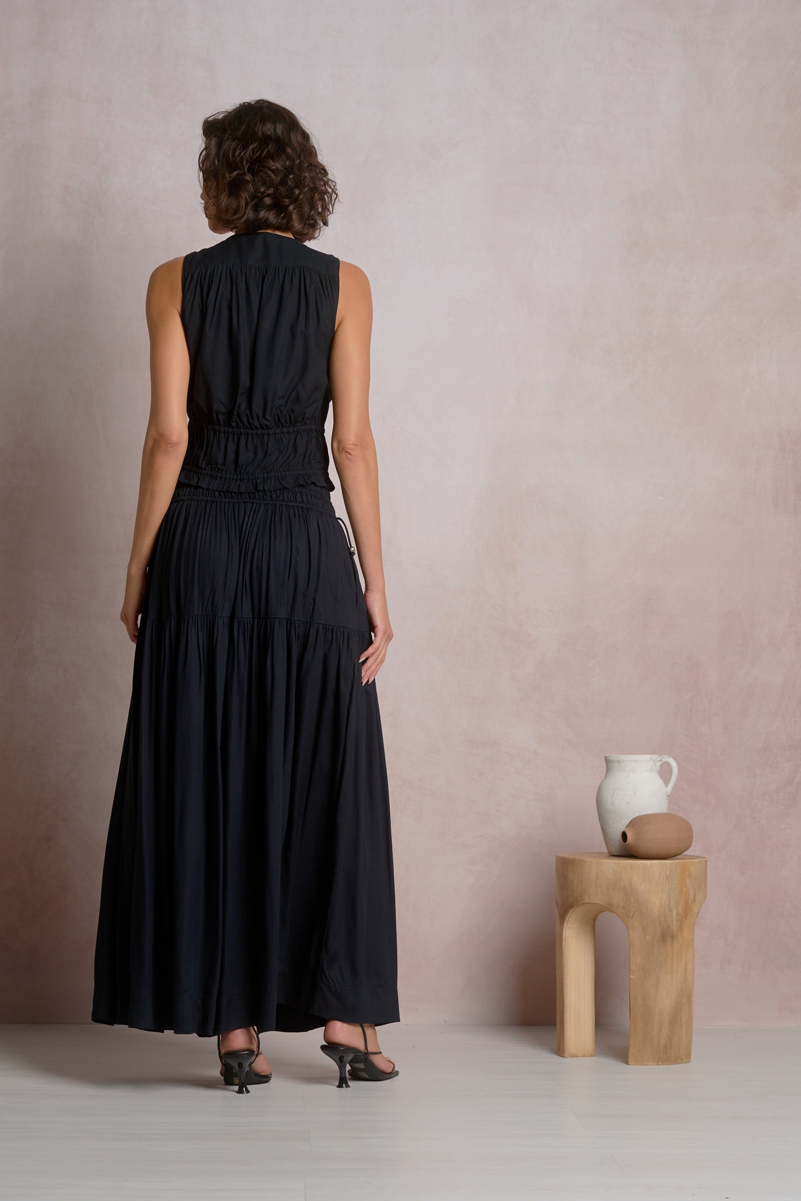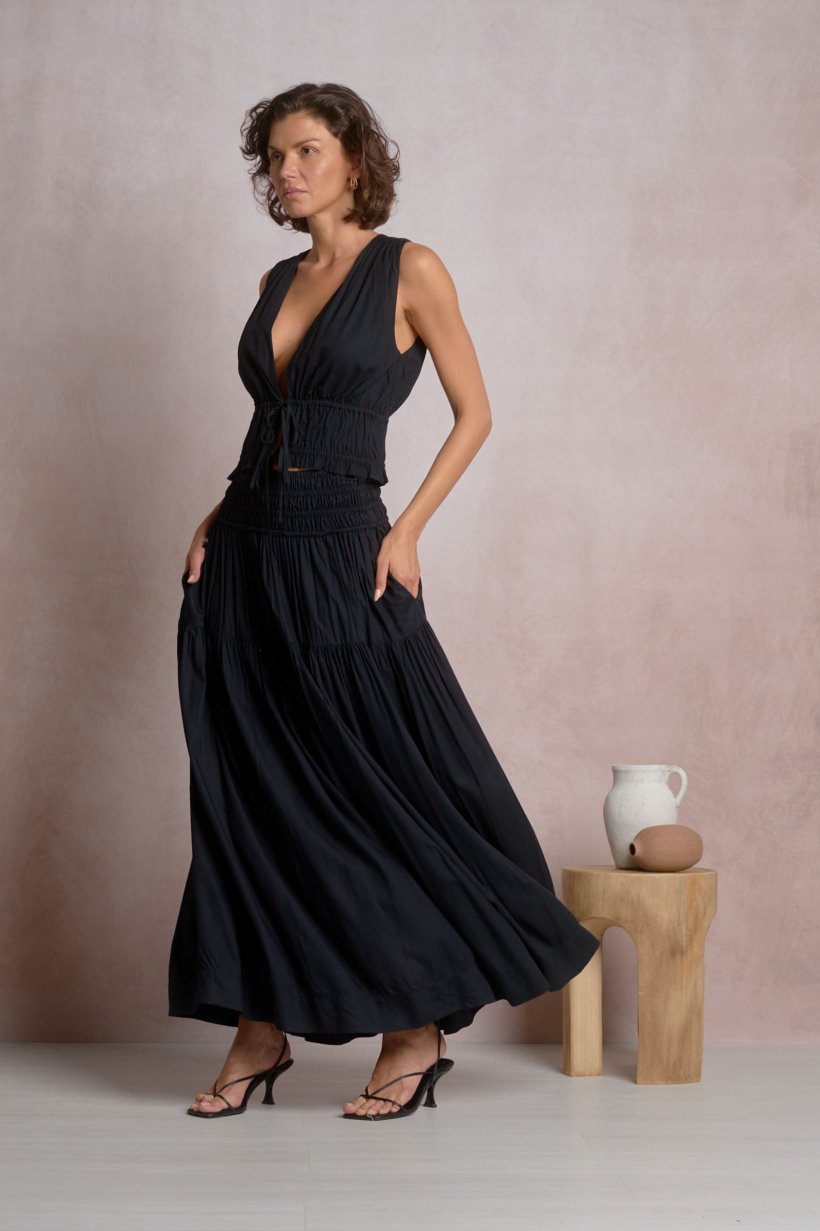 Fly Away Sleeveless Tank features a daring plunging tie center that creates a striking silhouette while maintaining comfort and movement. The sleeveless design offers versatility for layering or wearing solo, making it an essential piece for warm-weather styling. The tie-front detail adds dimension and allows for personalized fit adjustments. Perfect for those seeking contemporary edge with functional design.