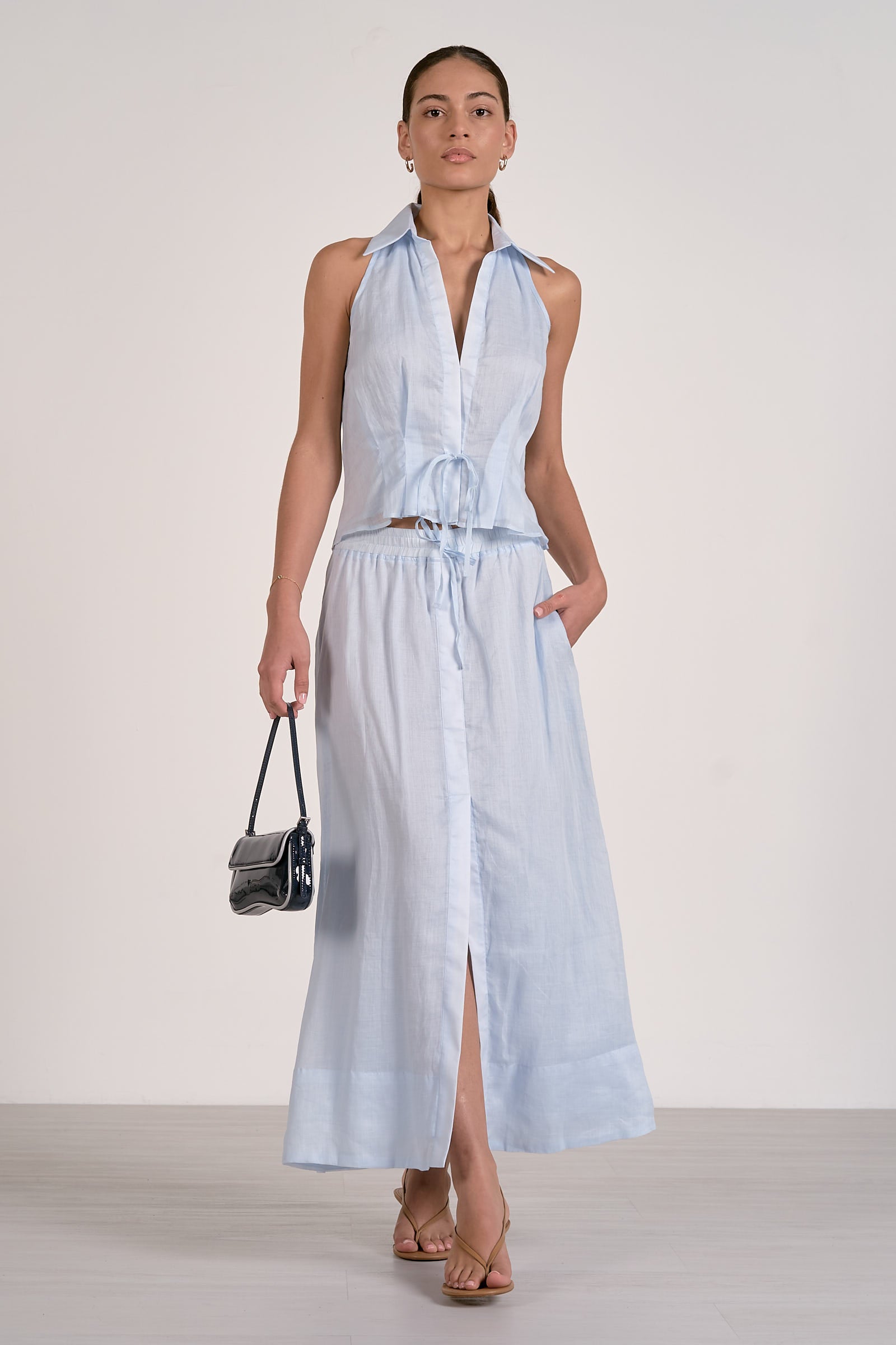 The Sophie Maxi Skirt adds effortless sophistication to your professional wardrobe with its flowing silhouette and strategic slit. Featuring a comfortable elastic waistband for all-day wearability, this piece seamlessly transitions from boardroom to tropical getaway. The maxi length and business-appropriate styling make it ideal for warm-weather work environments, while the relaxed fit and breathable fabric keep you cool and composed. Perfect for professionals seeking polished elegance with a hint of vacation-ready charm.